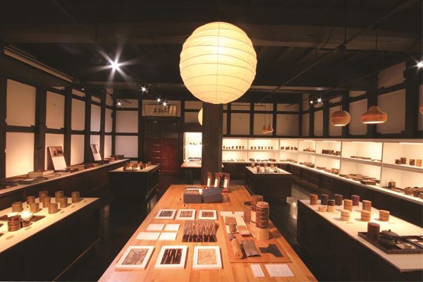創業当時の築とされる内蔵をリノベした店内は、美術館のごとし。お土産に最適な小物類もそろう