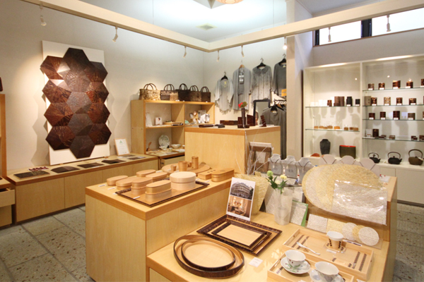 角館の「樺細工」と「川連漆器」、「大館曲げわっぱ」など、樺細工と秋田県内各地に伝承される伝統校工芸品のコラボをはじめ、先人たちの技と先鋭的な感覚を融合した器や食器、日用雑貨、小間物など、ここにしかない逸品を創出。海外でも注目の逸品がそろう。