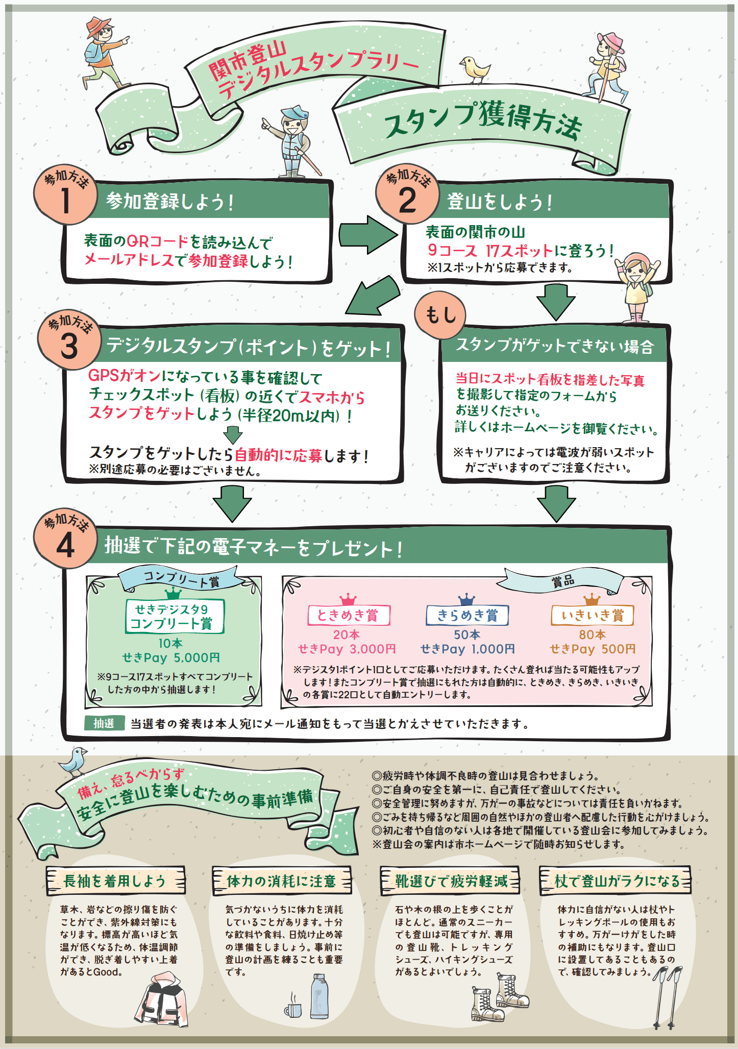 ・当選者には、参加登録時のメールアドレスに当選メールを送信しますので、必要事項を記入の上返信してください。その後、郵送で「せきPAY」の登録案内、QRコード等を郵送し完了となります。