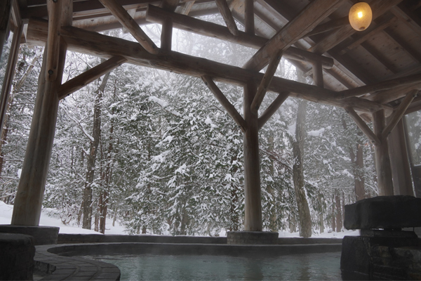 大自然との一体感に癒される森の中の温泉。雪見風呂も情緒満点