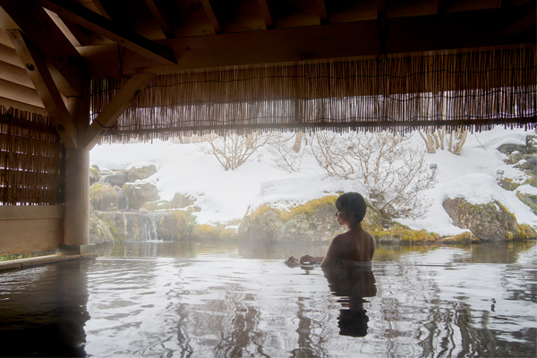 ▲源泉かけ流しの雪見露天風呂も風情がある