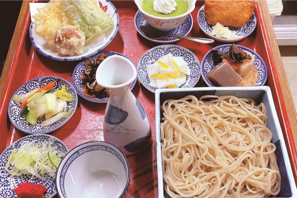 ▲そばと天婦羅、煮物、稲荷などのセット「あねっこ定食」