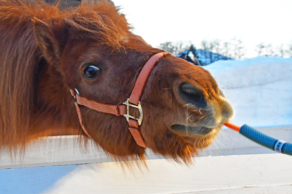 ▲餌槍体験ができる「おうまさんのもぐもぐタイム」
