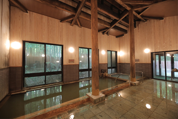 内湯は男女ともに、大浴槽が「乳頭の湯 ナトリウム炭酸水素塩泉」、小浴槽が「田沢湖高原の湯 単純硫黄泉」。