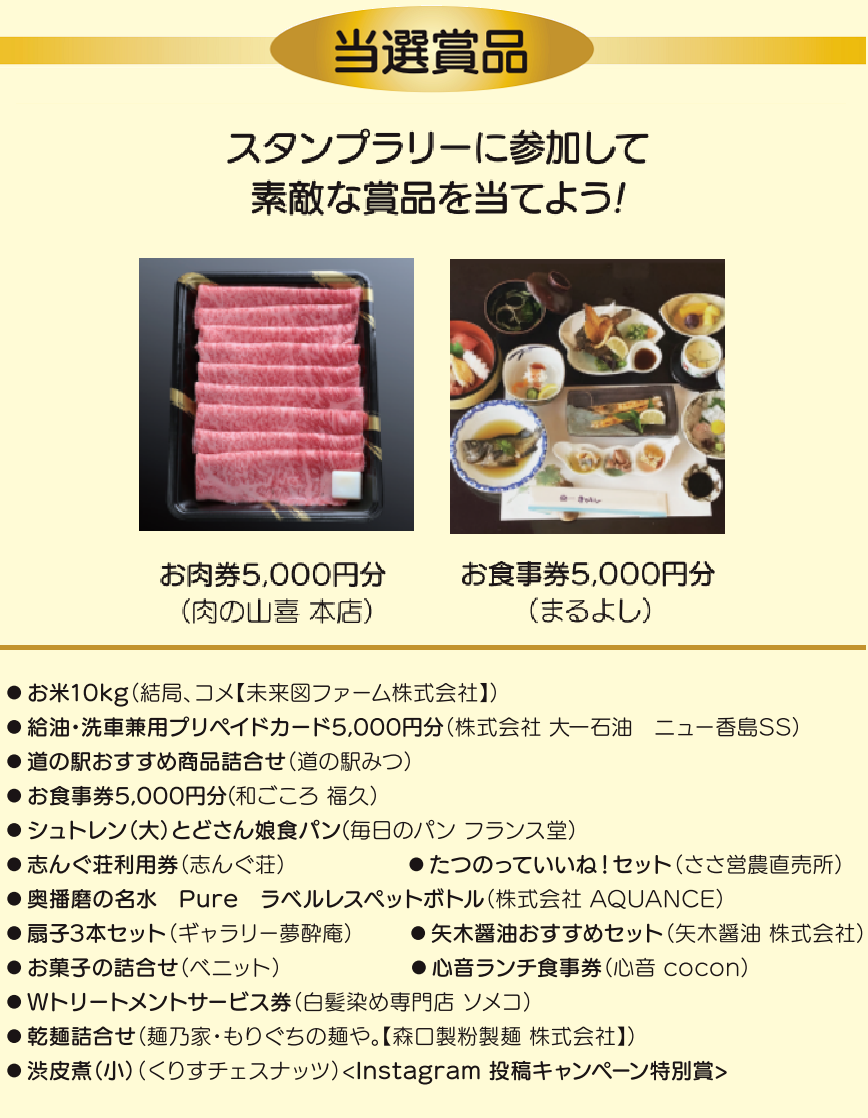 スタンプラリー参加店より素敵な賞品を抽選で総数84名様にプレゼント!